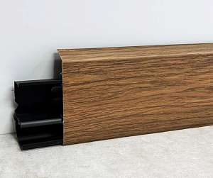 Высота плашек – 60мм. Она позволяет заводить под плинтус стеновые панели и полностью закрывать технические зазоры между стеной и покрытием пола. Можно не выравнивать стены и пол в месте их стыка.